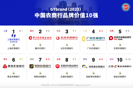 2023中国农村商业银行品牌价值排名前十名:上海农商银行、重庆农商行、北京农商行、广州农商行、东莞农商行、青岛农商行、常熟银行、无锡农商行、张家港行、紫金银行。