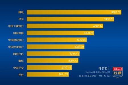 2021中国品牌价值前十强:腾讯连续三年荣膺中国最具价值品牌