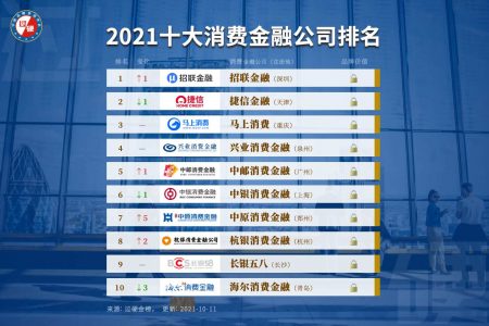 过硬金榜发布2021全国持牌消费金融公司TOP10榜单