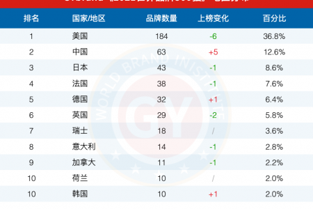 2021世界品牌500强各国数量排名出炉:中美占据半壁江山