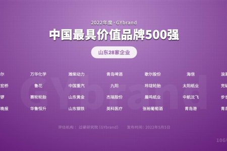 2022年度GYbrand中国最具价值品牌500强名单发布,山东有28家企业入选:济南6家、青岛6家、烟台5家、潍坊4家、济宁2家、滨州1家、临沂1家、威海1家、菏泽1家、德州1家。